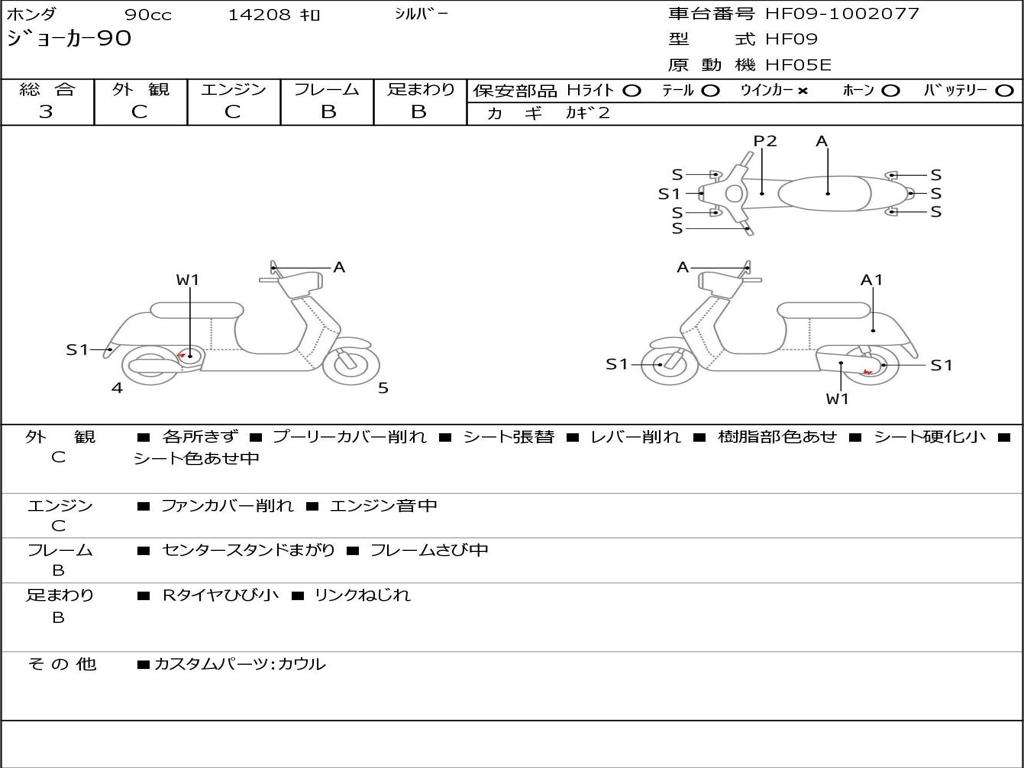 | Номер рамы / VIN | HF09-1002077 |
