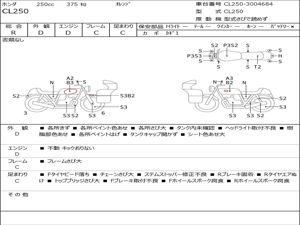 | Номер рамы / VIN | CL250-3004684 |