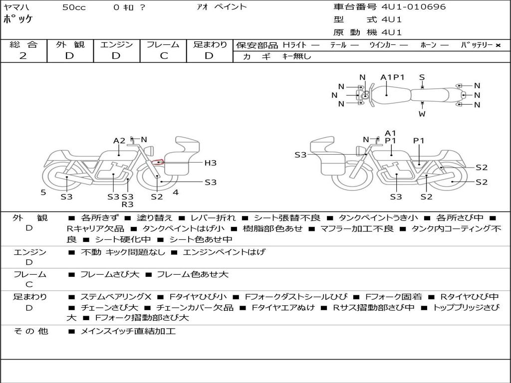 | Номер рамы / VIN | 4U1-010696 |