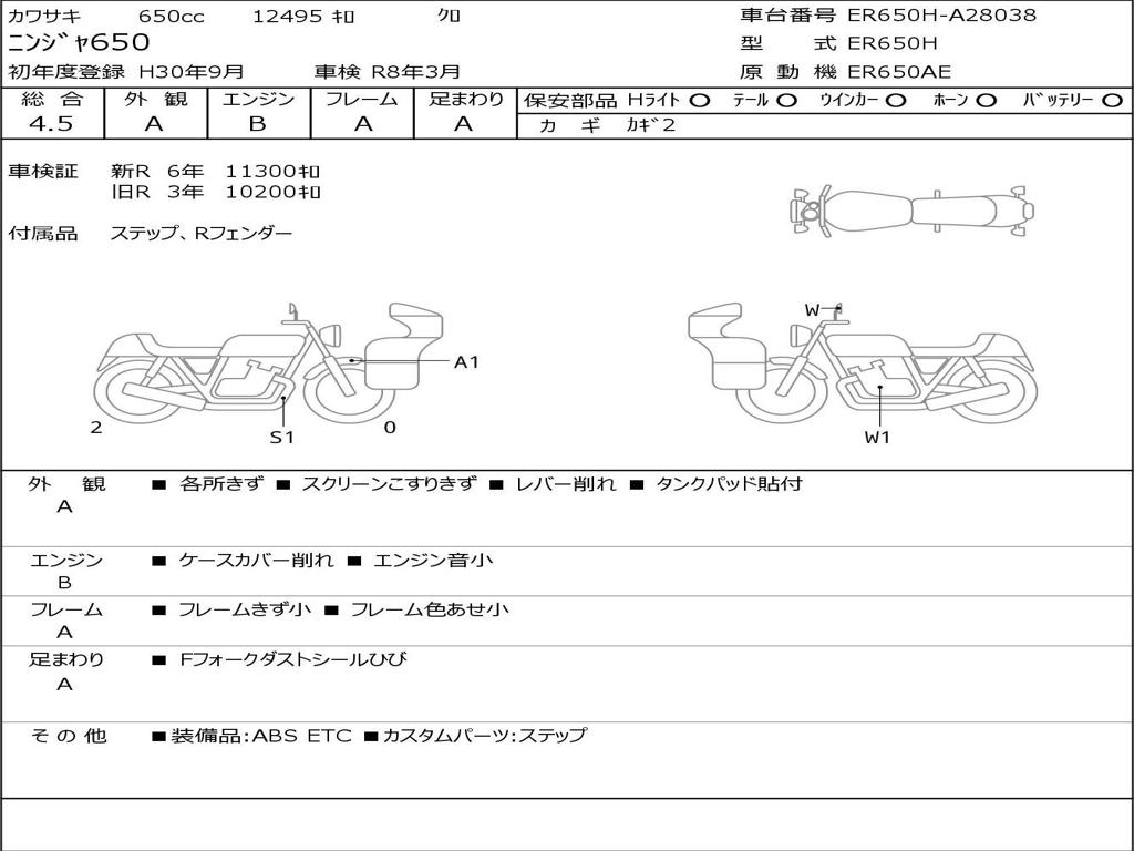 | Номер рамы / VIN | ER650H-A28038 |