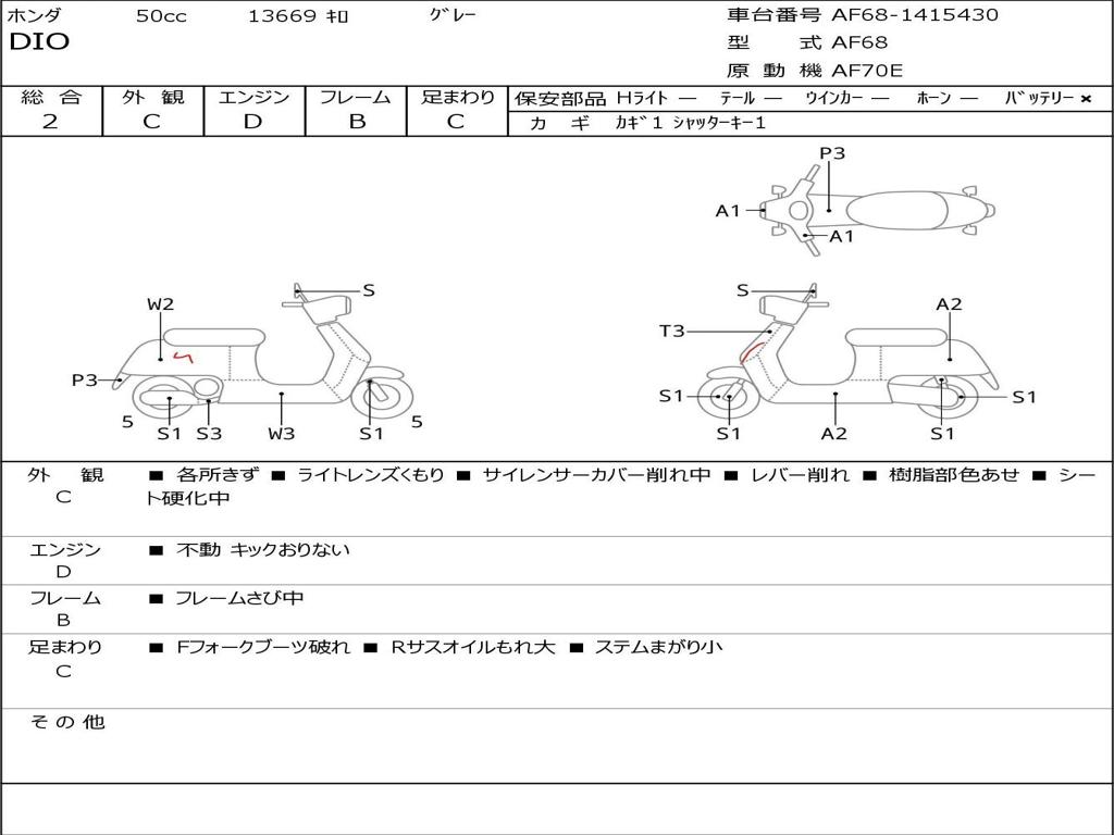 | Номер рамы / VIN | AF68-1415430 |