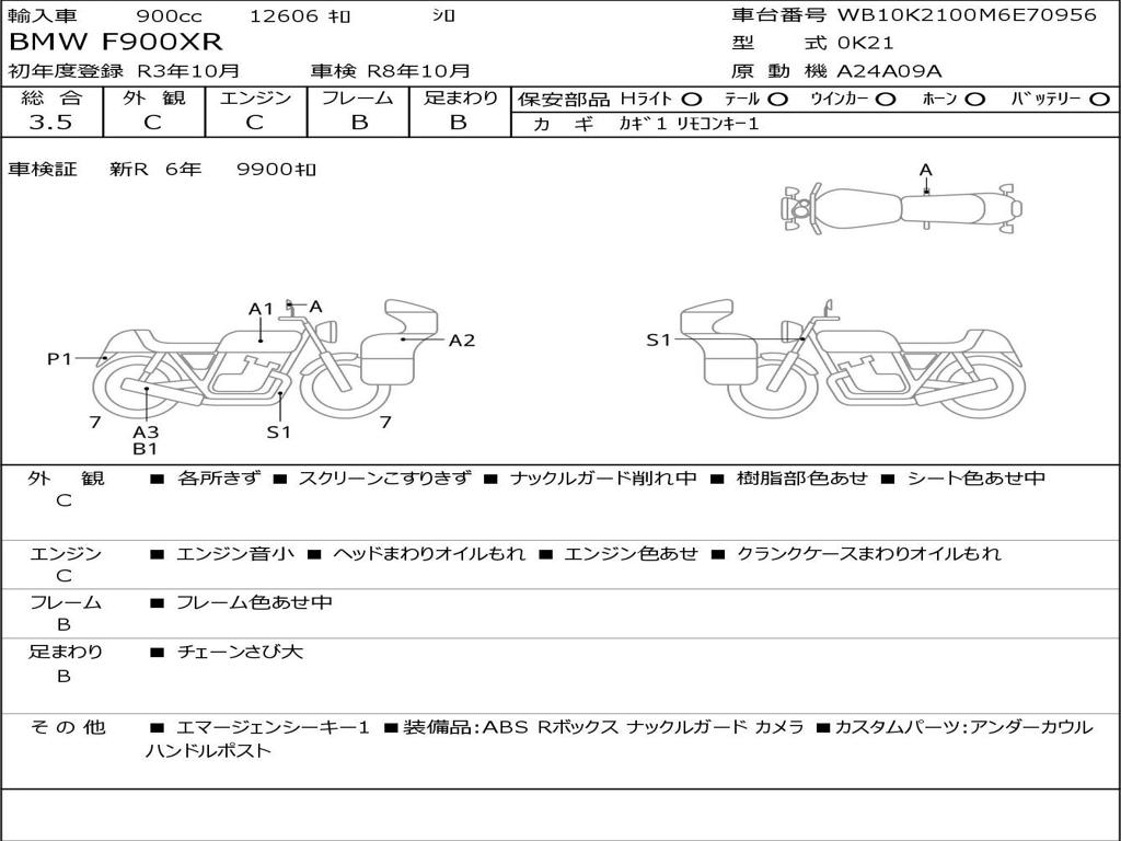 | Номер рамы / VIN | WB10K2100M6E70956 |