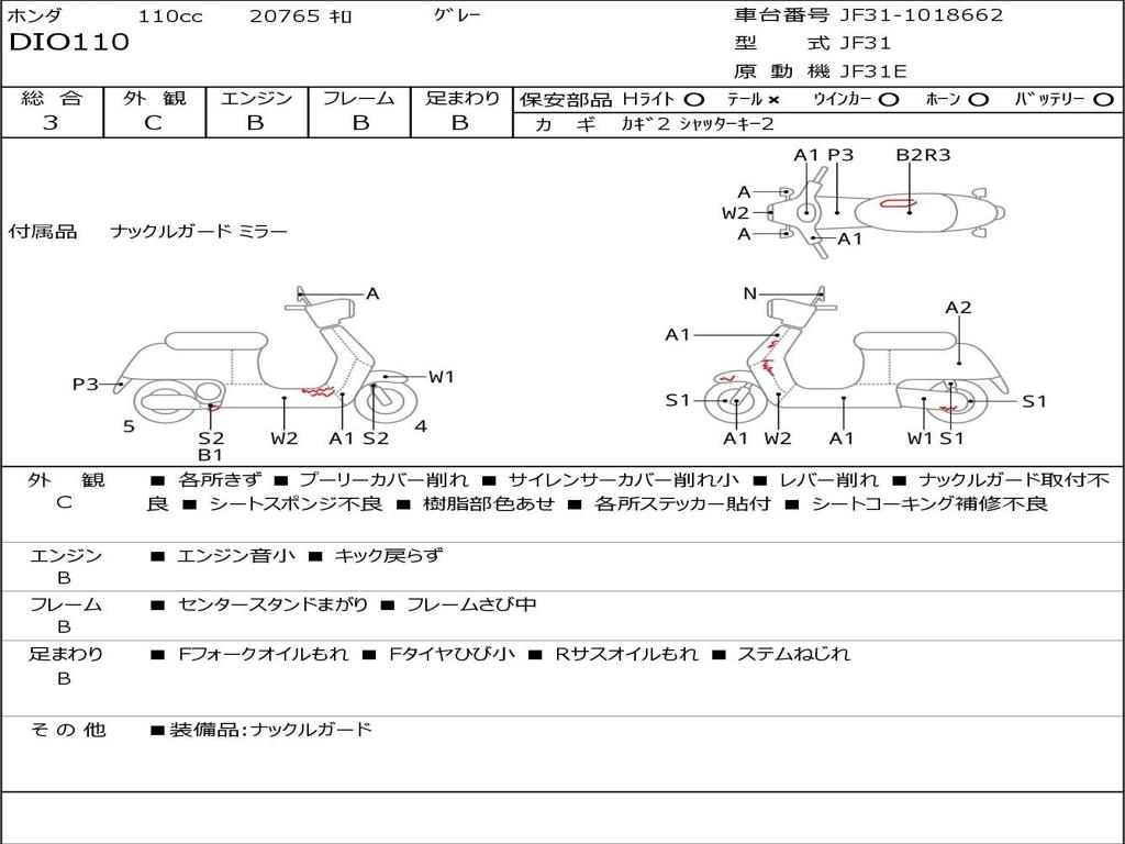 | Номер рамы / VIN | JF31-1018662 |