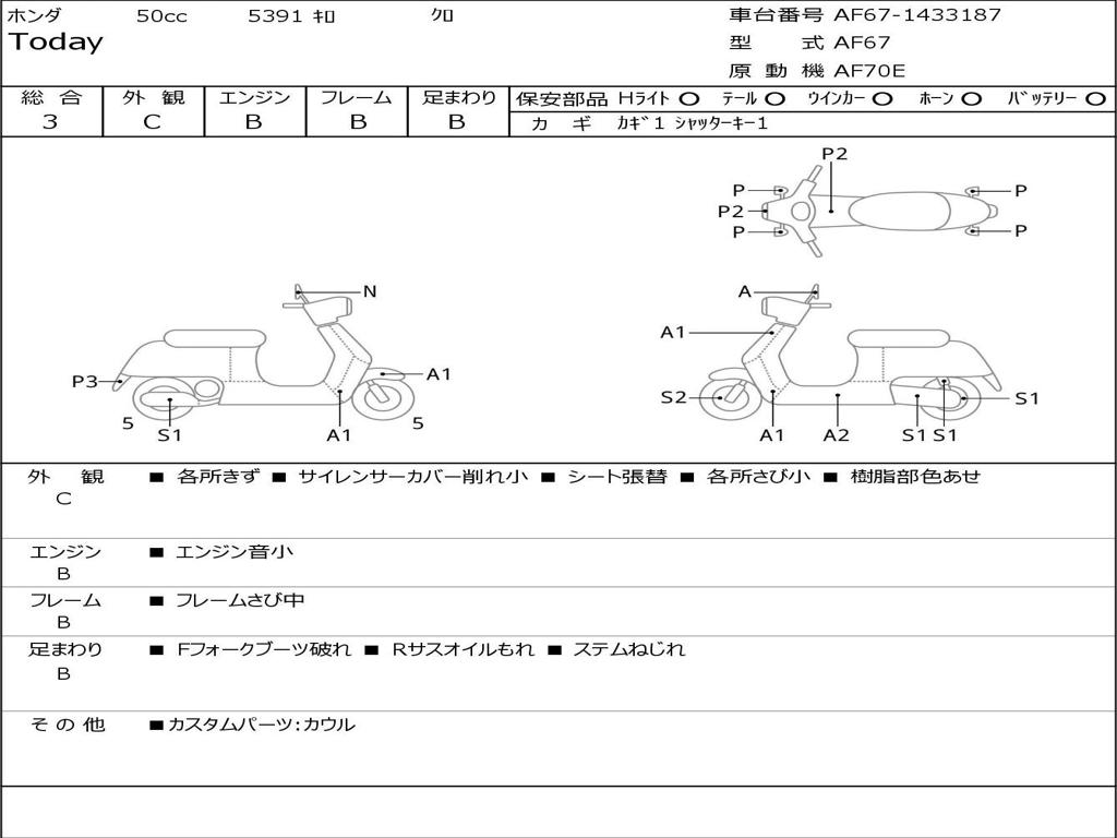 | Номер рамы / VIN | AF67-1433187 |