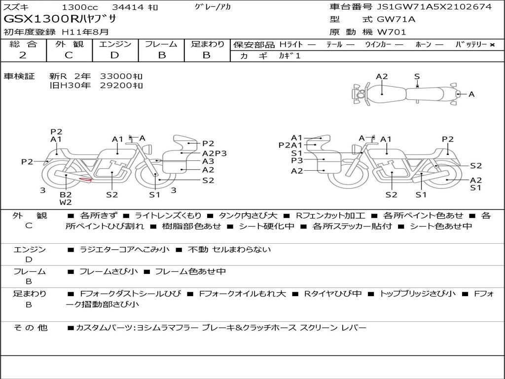 | Номер рамы / VIN | JS1GW71A5X2102674 |