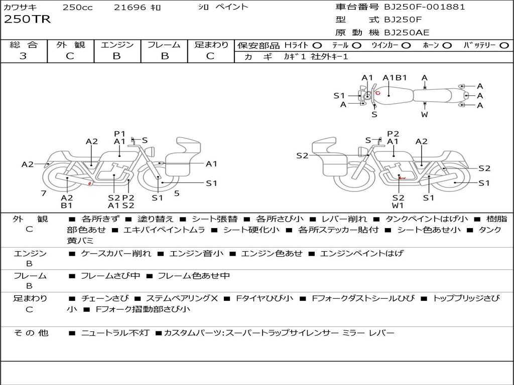 | Номер рамы / VIN | BJ250F-001881 |