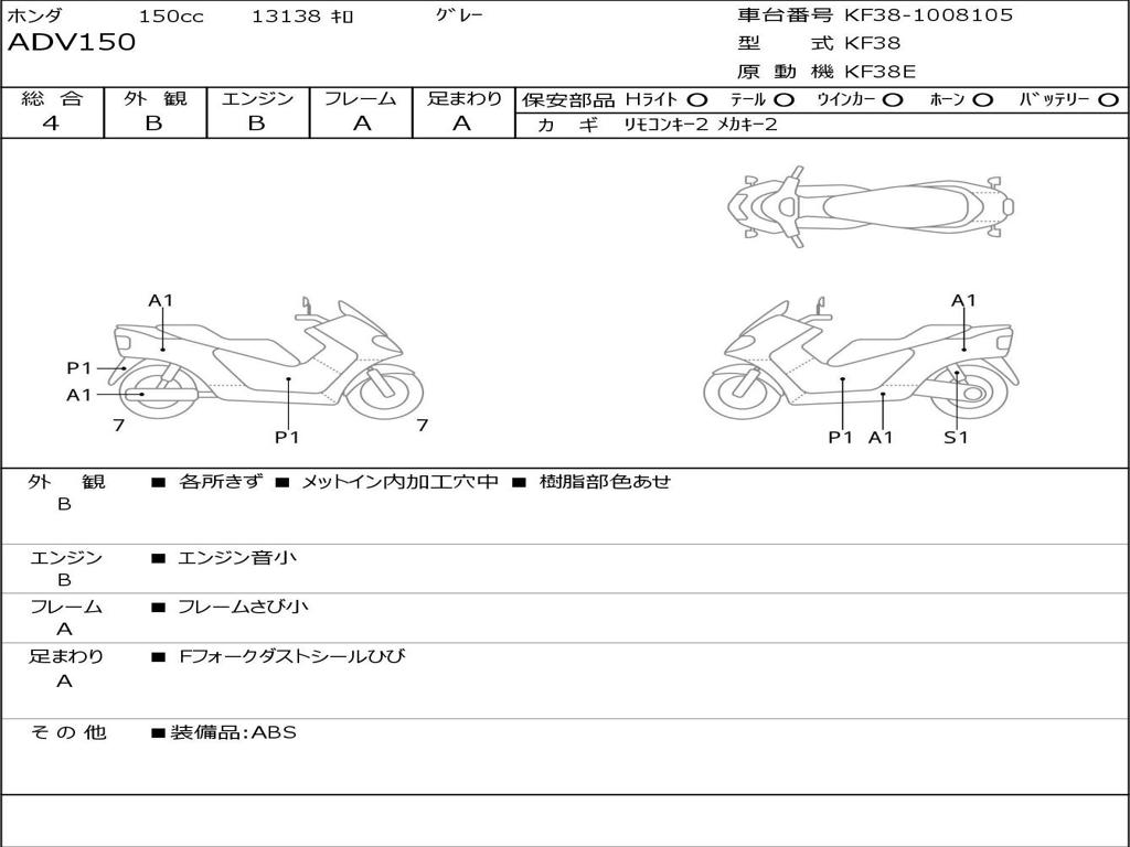 | Номер рамы / VIN | KF38-1008105 |