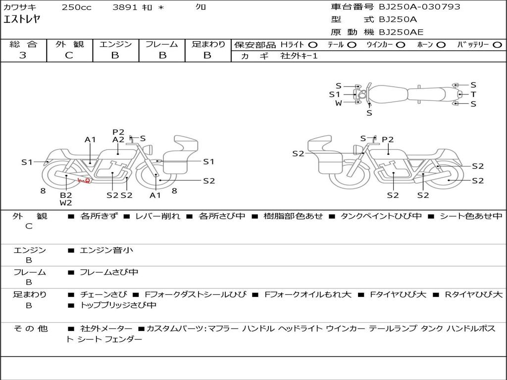 | Номер рамы / VIN | BJ250A-030793 |