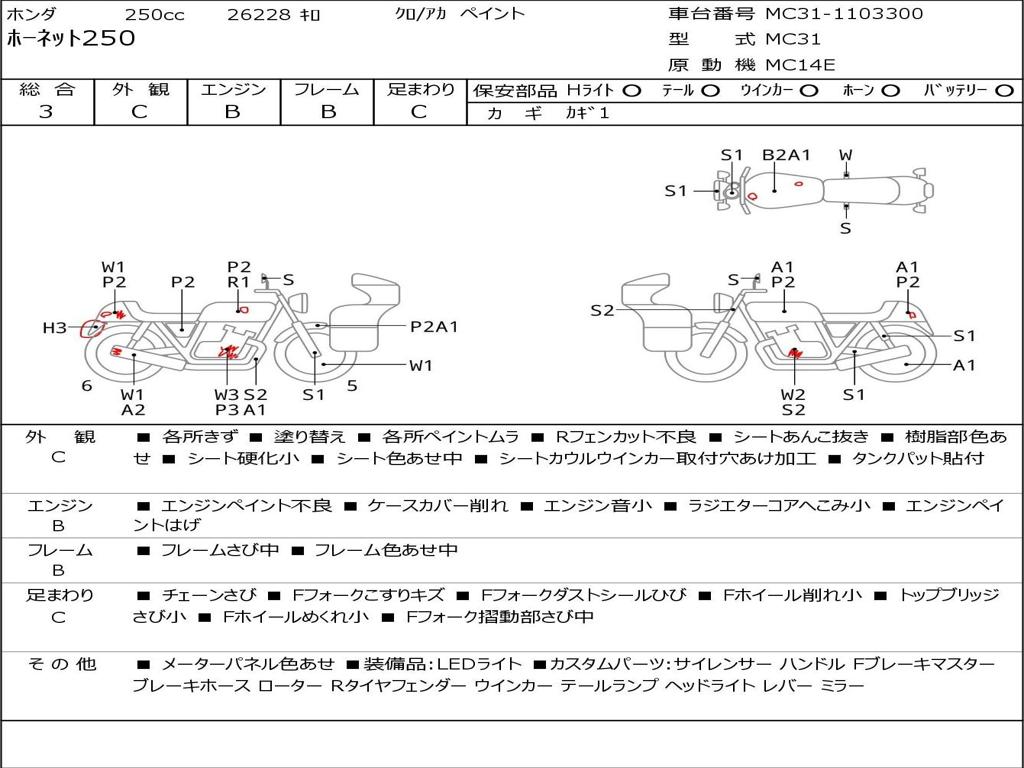 | Номер рамы / VIN | MC31-1103300 |