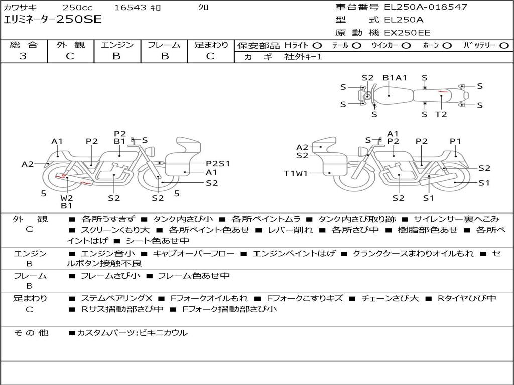 | Номер рамы / VIN | EL250A-018547 |