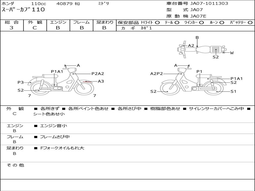 | Номер рамы / VIN | JA07-1011303 |