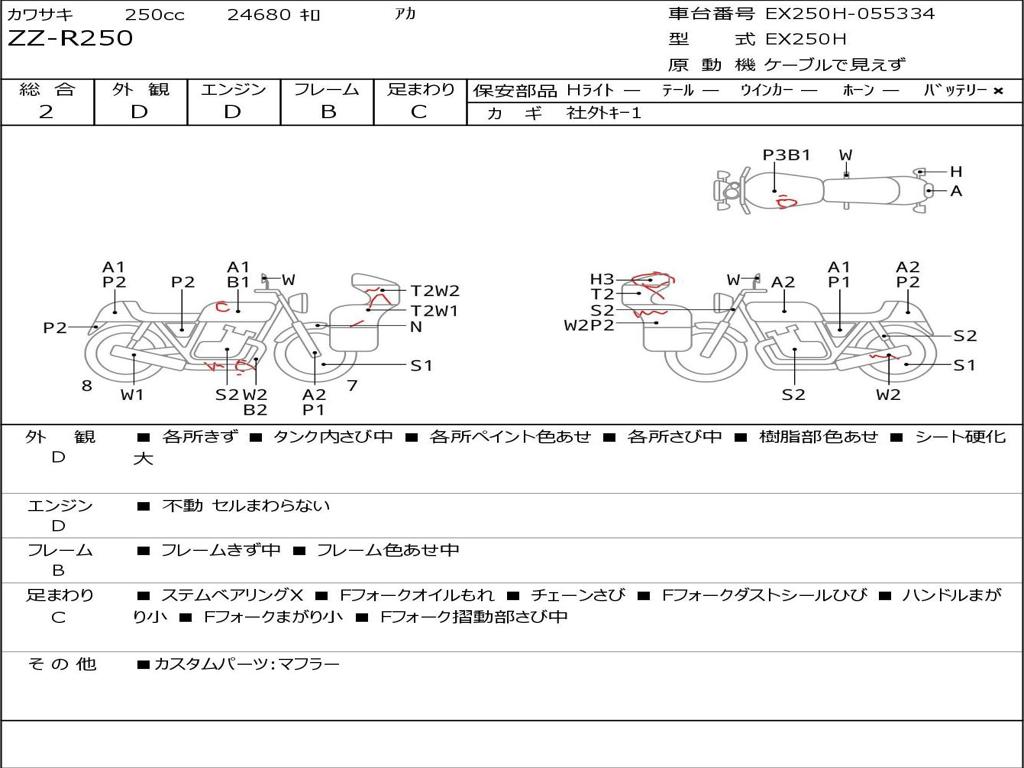 | Номер рамы / VIN | EX250H-055334 |