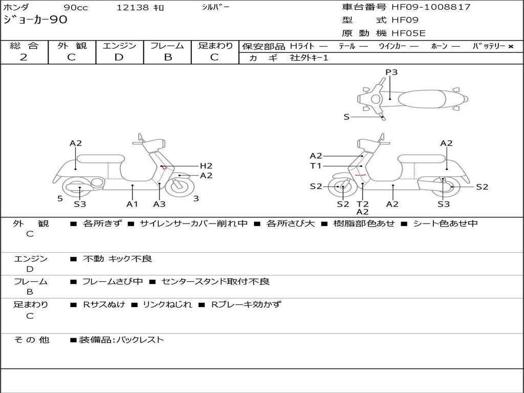 | Номер рамы / VIN | HF09-1008817 |