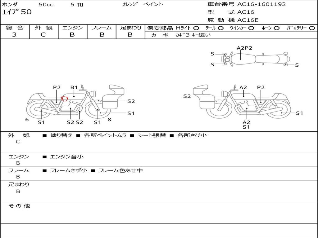 | Номер рамы / VIN | AC16-1601192 |