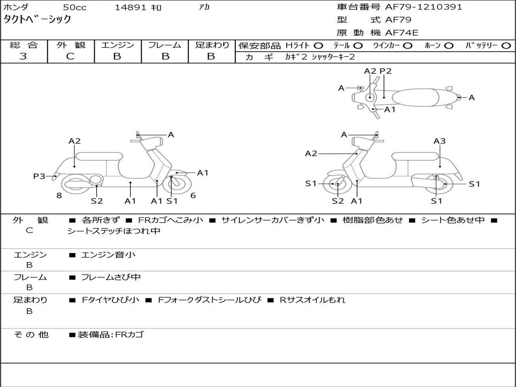 | Номер рамы / VIN | AF79-1210391 |