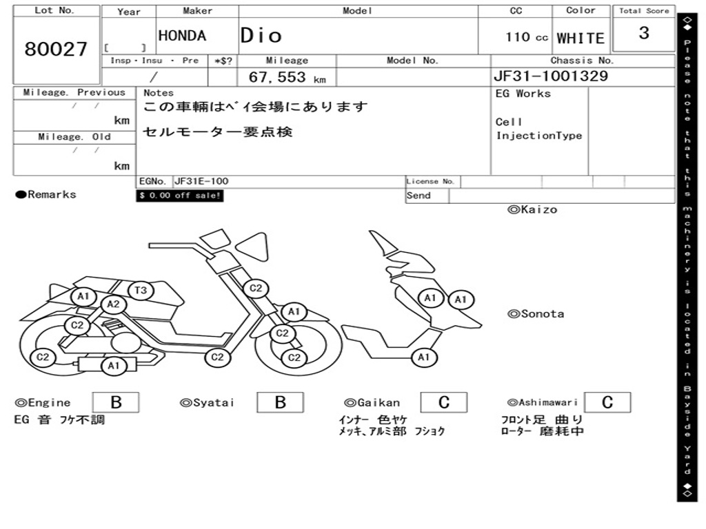 | Номер рамы / VIN | JF31-1001329 |