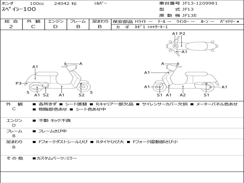 | Номер рамы / VIN | JF13-1209981 |