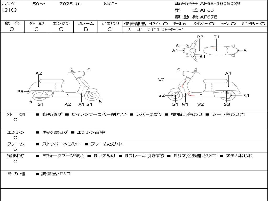 | Номер рамы / VIN | AF68-1005039 |