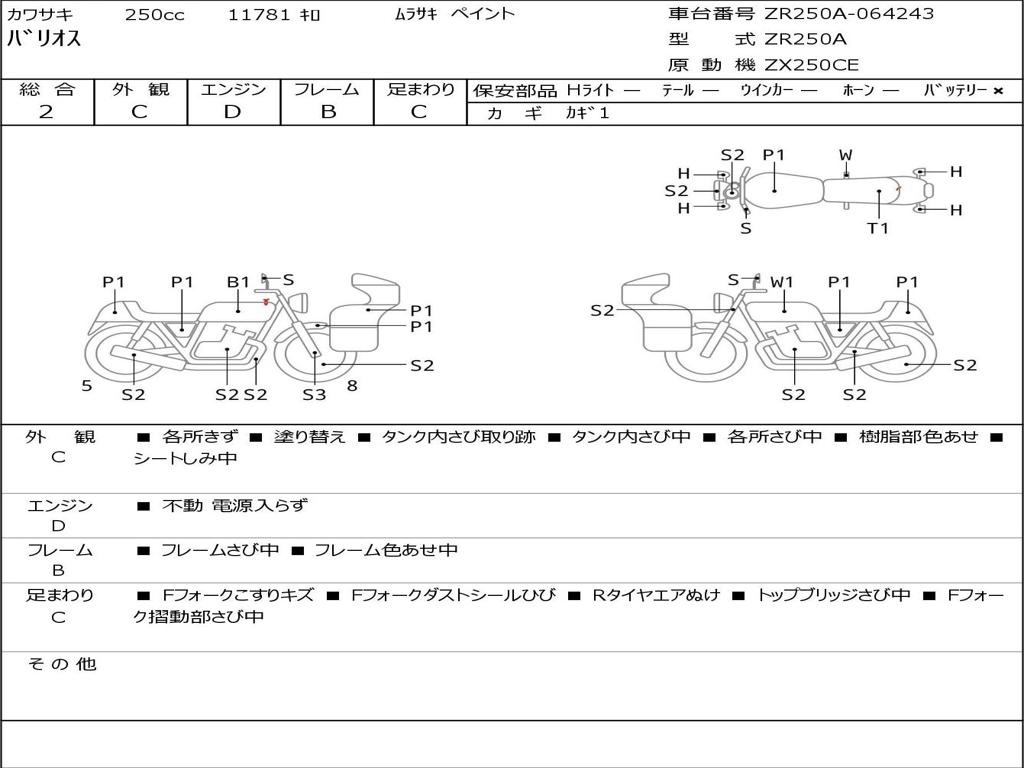 | Номер рамы / VIN | ZR250A-064243 |