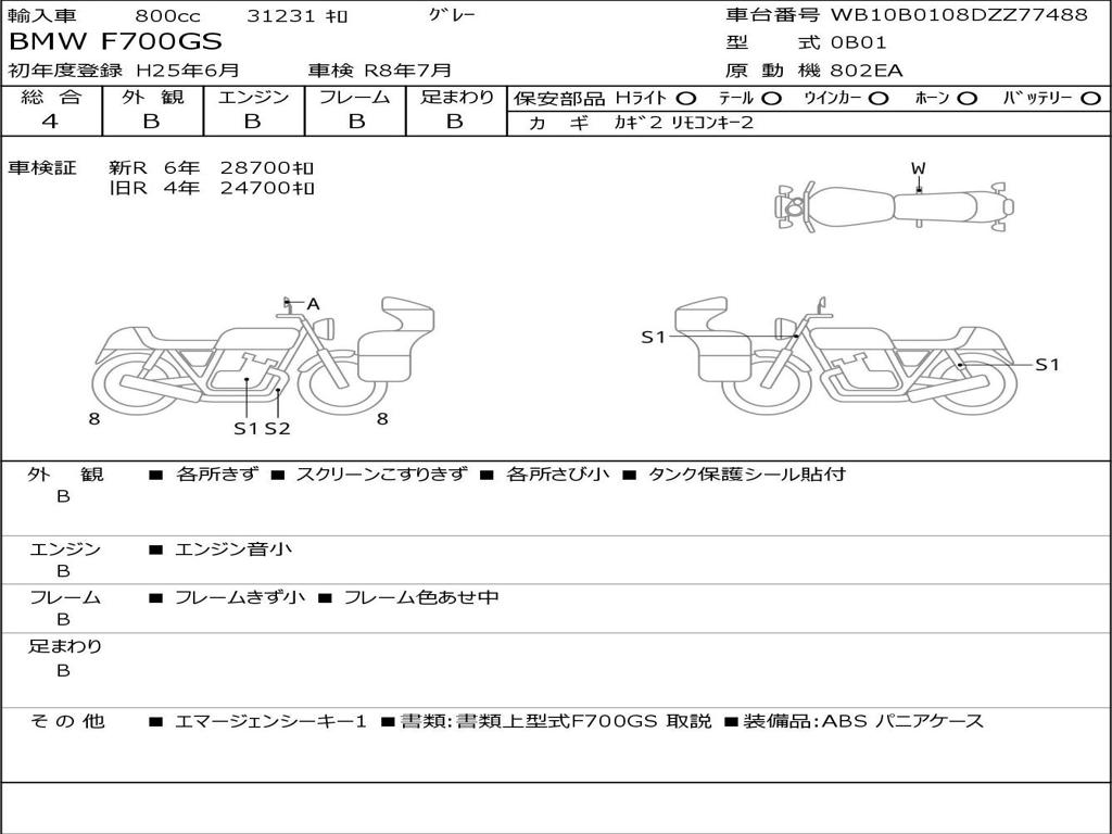 | Номер рамы / VIN | WB10B0108DZZ77488 |