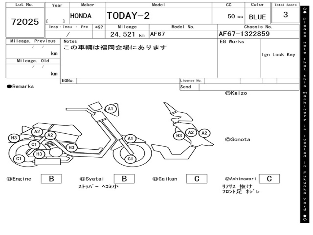 | Номер рамы / VIN | AF67-1322859 |