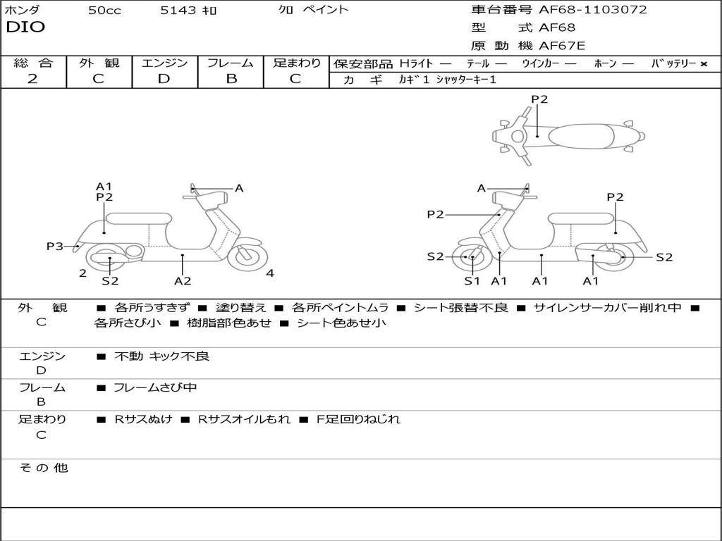 | Номер рамы / VIN | AF68-1103072 |