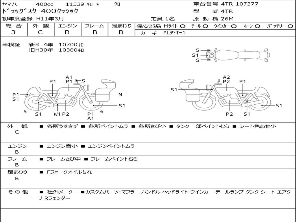 | Номер рамы / VIN | 4TR-107377 |
