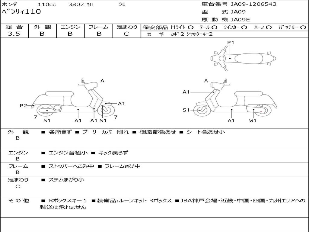 | Номер рамы / VIN | JA09-1206543 |