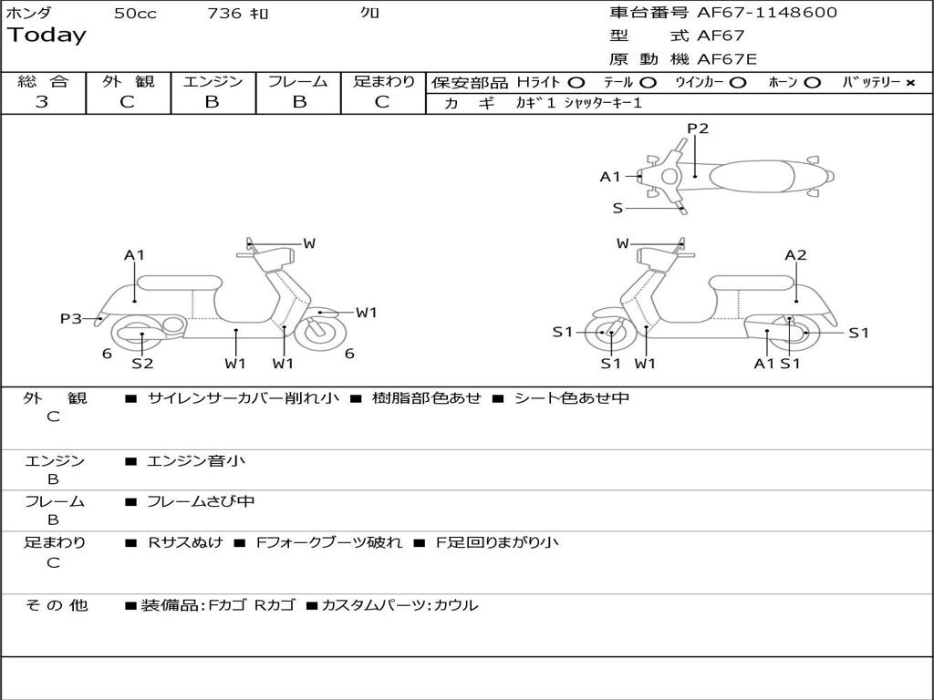 | Номер рамы / VIN | AF67-1148600 |