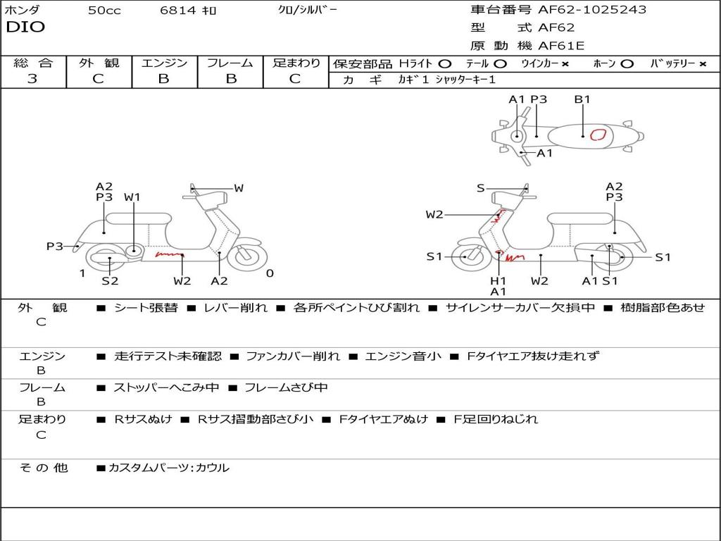 | Номер рамы / VIN | AF62-1025243 |