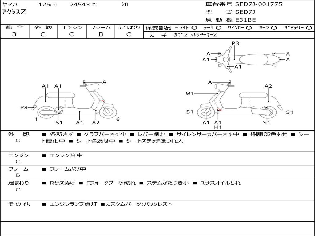 | Номер рамы / VIN | SED7J-001775 |