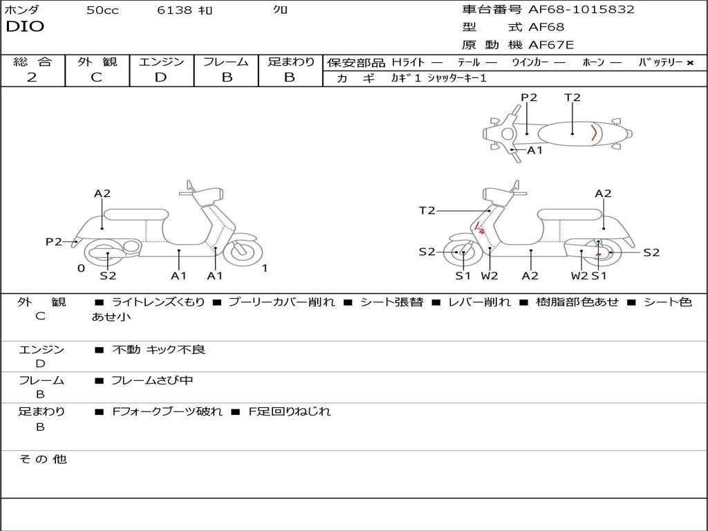 | Номер рамы / VIN | AF68-1015832 |