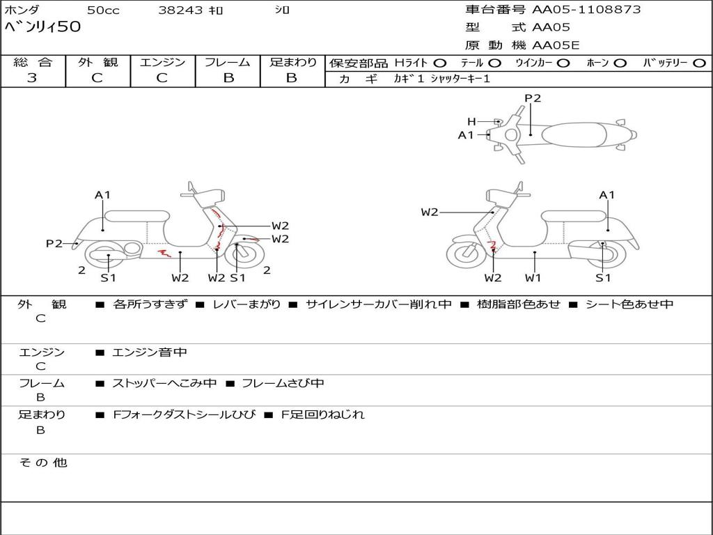 | Номер рамы / VIN | AA05-1108873 |