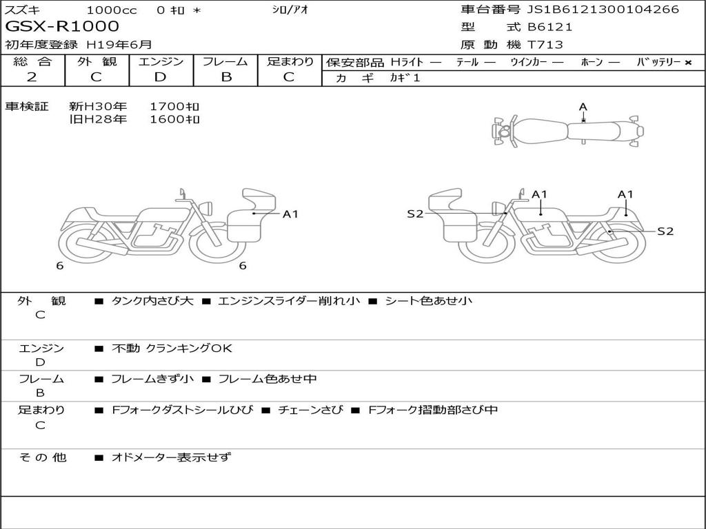 | Номер рамы / VIN | JS1B6121300104266 |