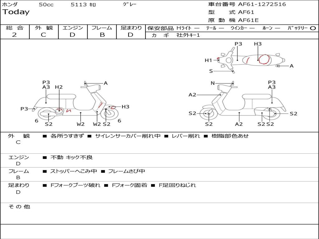| Номер рамы / VIN | AF61-1272516 |