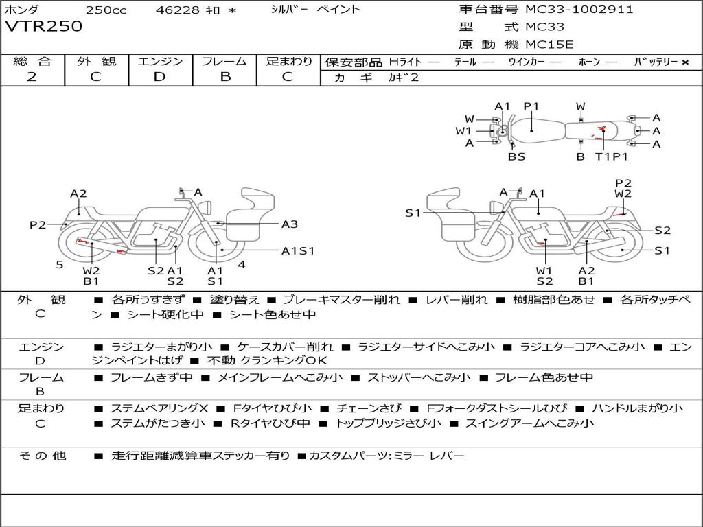 | Номер рамы / VIN | MC33-1002911 |