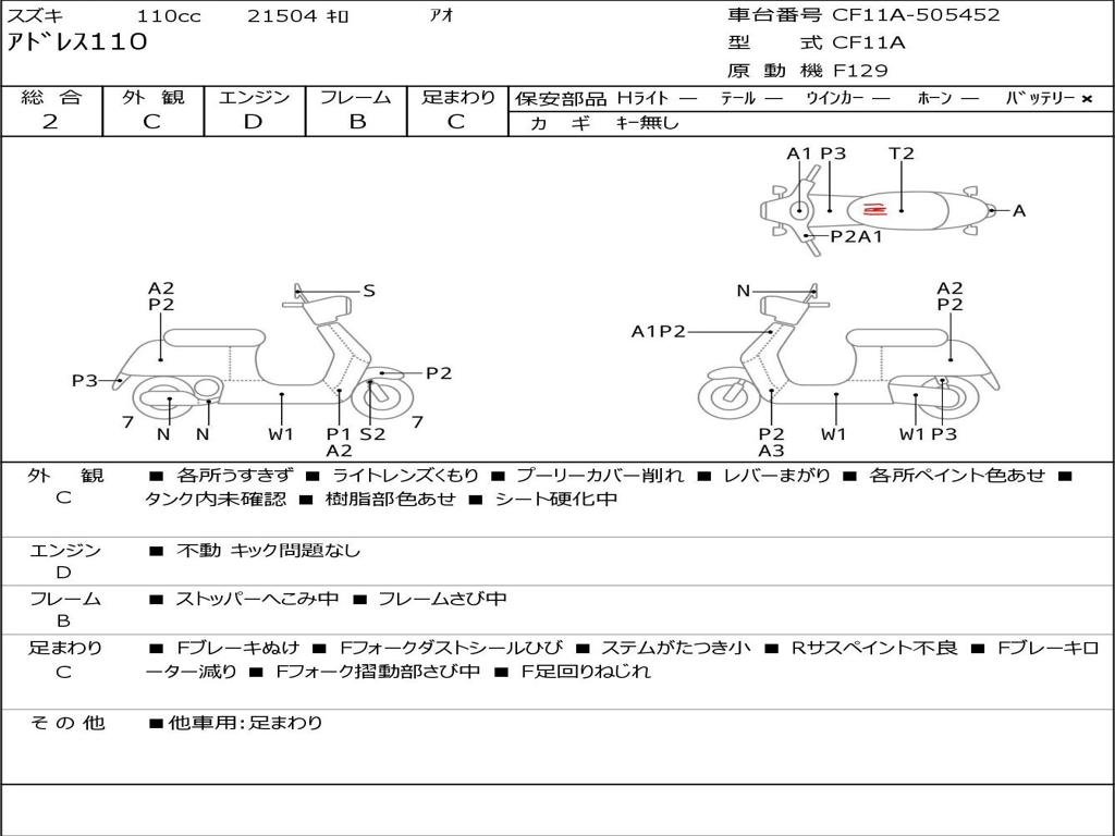 | Номер рамы / VIN | CF11A-505452 |