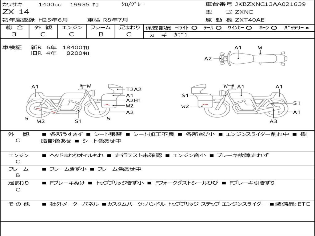 | Номер рамы / VIN | JKBZXNC13AA021639 |