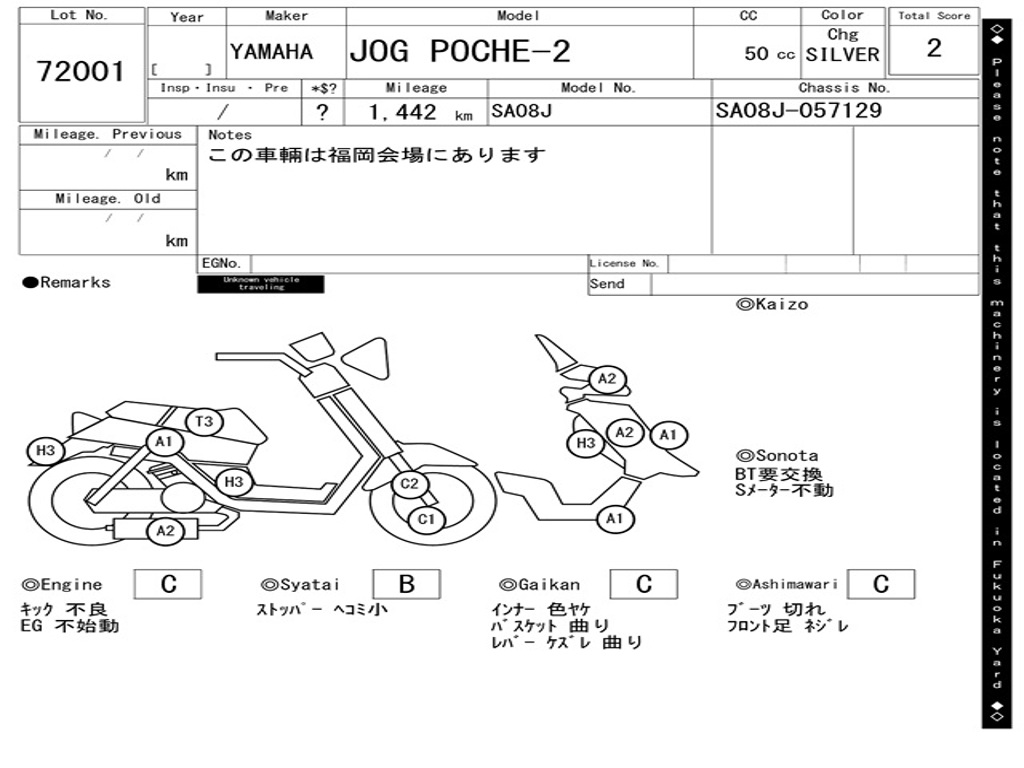 | Номер рамы / VIN | SA08J-057129 |