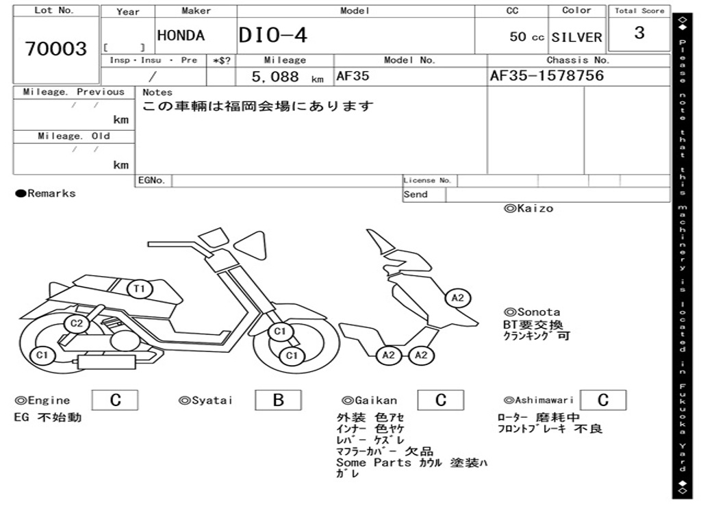 | Номер рамы / VIN | AF35-1578756 |