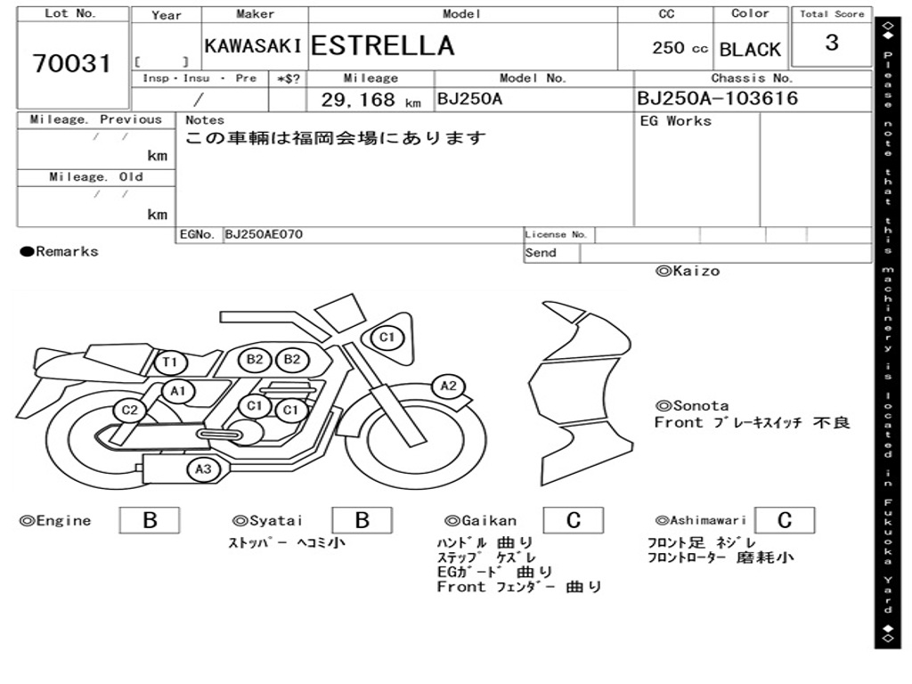 | Номер рамы / VIN | BJ250A-103616 |