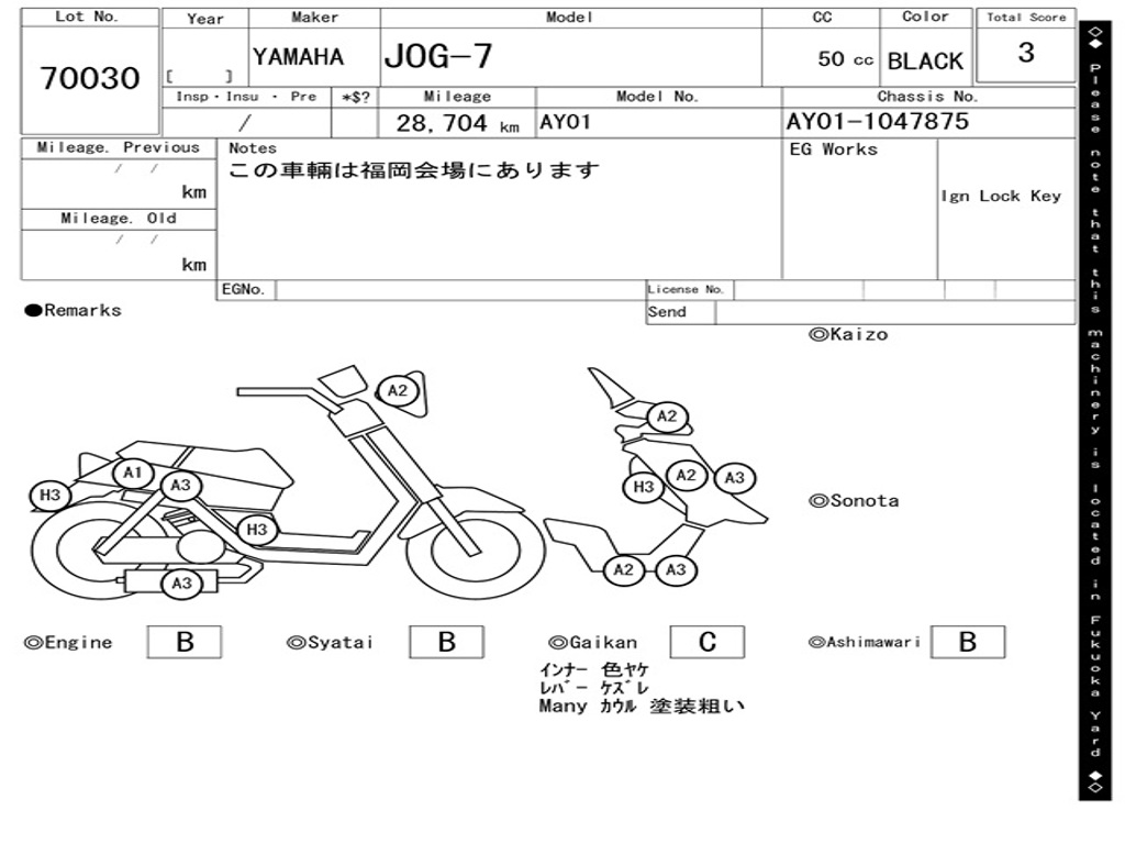 | Номер рамы / VIN | AY01-1047875 |