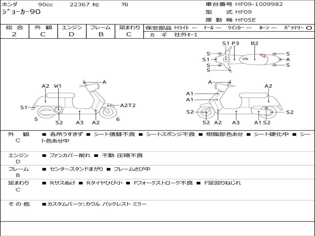 | Номер рамы / VIN | HF09-1009982 |