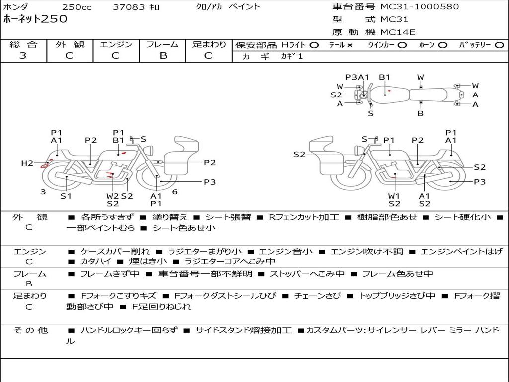 | Номер рамы / VIN | MC31-1000580 |