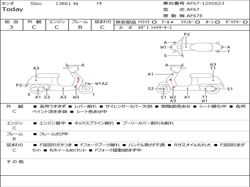 | Номер рамы / VIN | AF67-1200623 |