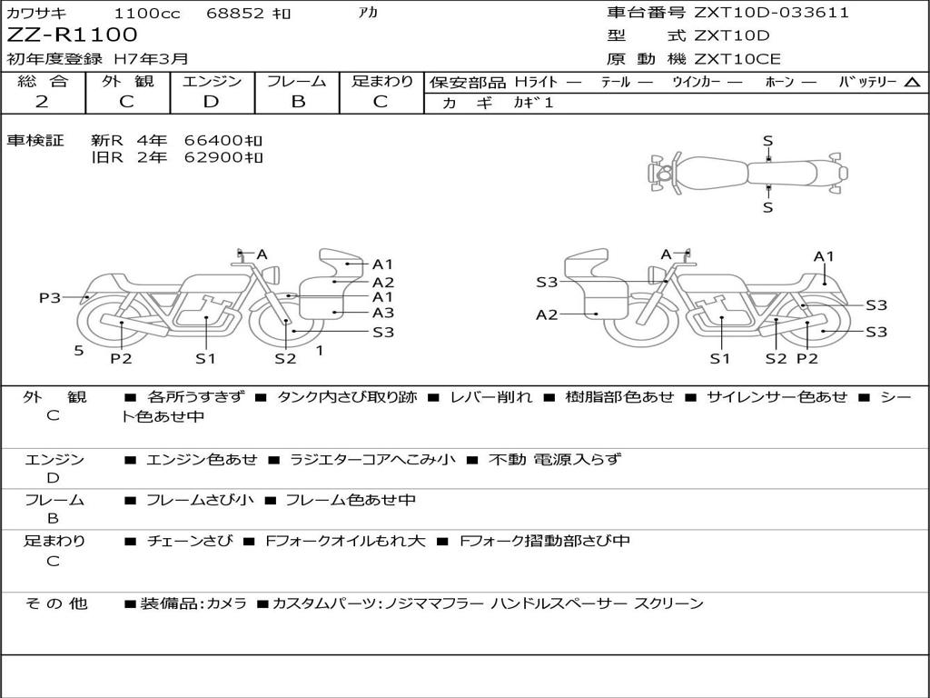| Номер рамы / VIN | ZXT10D-033611 |