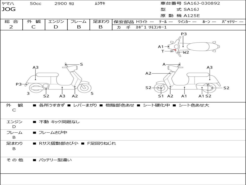 | Номер рамы / VIN | SA16J-030892 |