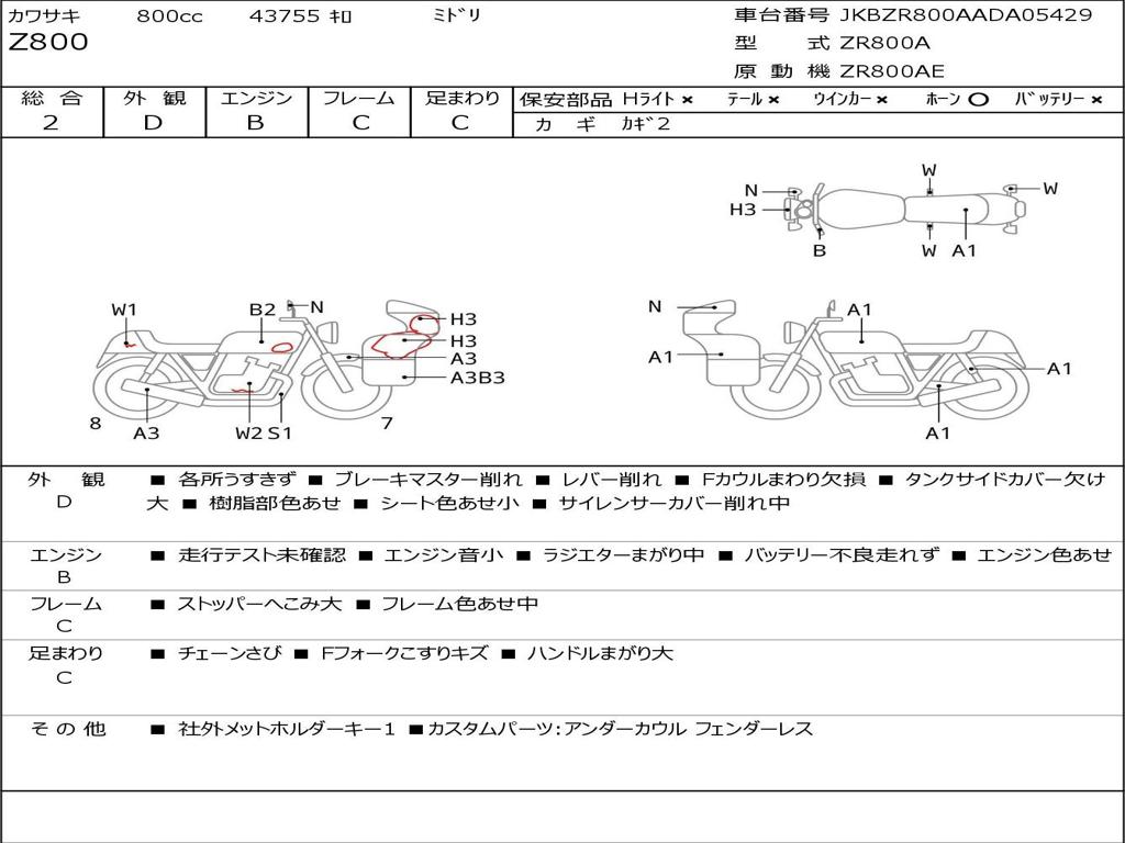 | Номер рамы / VIN | JKBZR800AADA05429 |