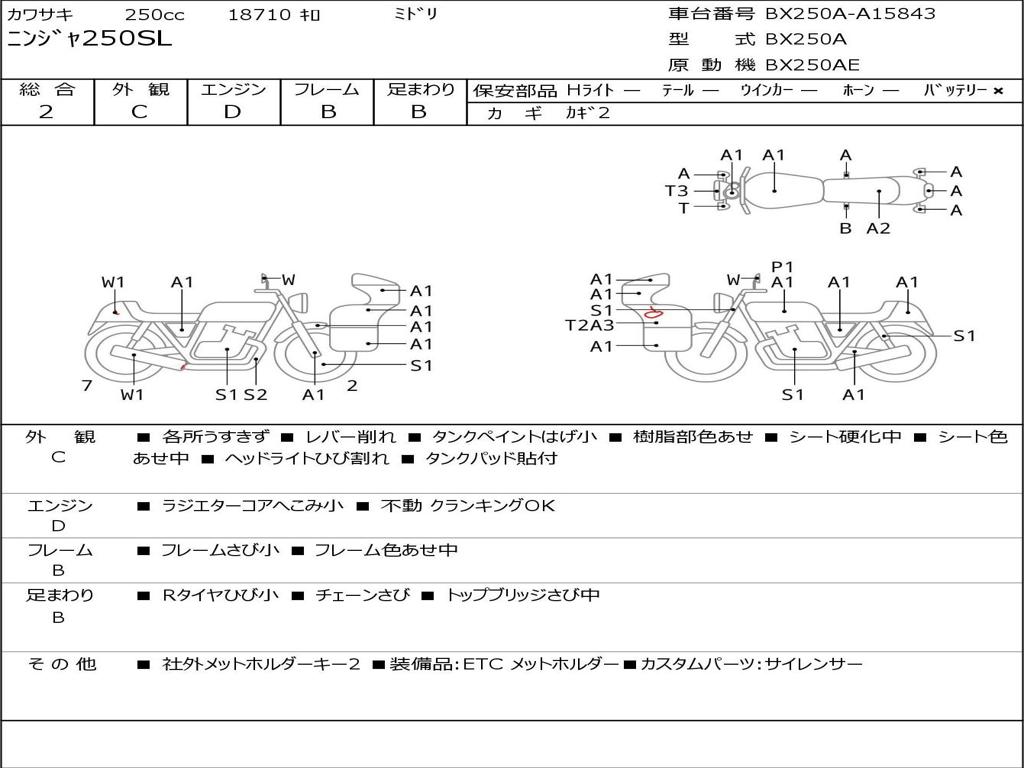 | Номер рамы / VIN | BX250A-A15843 |