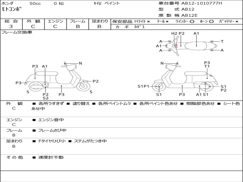| Номер рамы / VIN | AB12-1010777H |